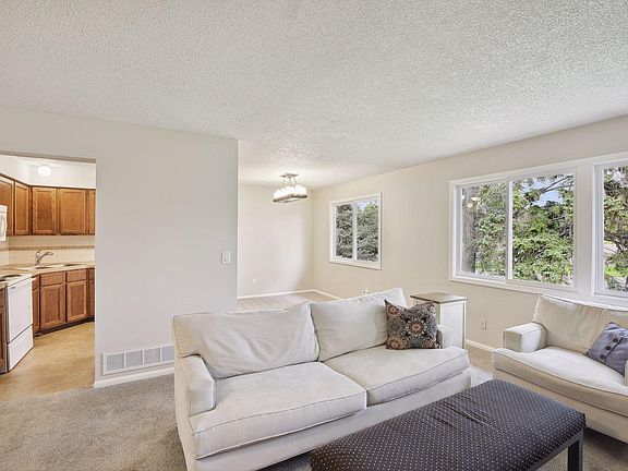 Garage. Twin home boasts fresh paint, new carpeting, newer windows & updated decor throughout. Upper level has nice open living space with kitchen open to dining area & living room. Three bedrooms and full bath round out the upper level.