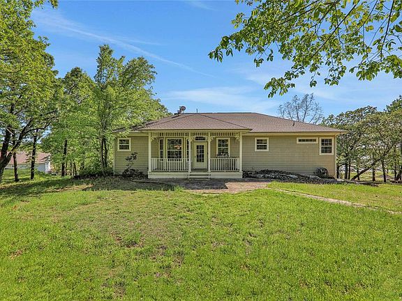 Nestled on 2.5 wooded acres of serene waterfront, this exceptional property is located on a picturesque cove between Deep Fork River Ranch & Leisure Land Estates. Designed in charming coastal cottage style by its original owner-builder, the home was constructed with "Grade A" lumber specially shipped from Florida. This dedication to quality craftsmanship is echoed throughout the property, with beautiful hardwoods used for flooring, cabinetry, & trim. The home is thoughtfully designed with a walk-out basement, created to provide separate living quarters for the builder's parents, but can be for families with teens, caregivers, property manager or rented for extra income. The door at the bottom of the stairwell ensures privacy between the two residences, each offering spacious, open-concept living & dining areas, fully equipped kitchens, laundry rooms, bedrooms with walk-in closets, private bathrooms, & access to covered patios. The attached 671 sq. ft., 2-car garage is a versatile space, featuring ample cabinetry, storage, and a large workbench—perfect for a workshop. It conveniently connects to the basement, covered patio, and fenced backyard. Additionally, the detached oversized 2-car garage, measuring an impressive 32x58, is large enough to house a boat and includes a decked attic with stair access that could be finished to create additional living space. This remarkable property combines quality, versatility, and a tranquil waterfront setting—a true gem waiting to be discovered. Home is fully furnished & stocked so you only have to show up with groceries & your suitcase!
