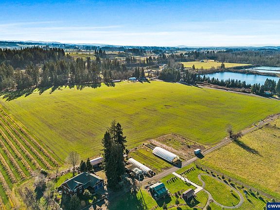 Irrigated Farm: ±92.07 acres w/±86.50 tillable (±54.40 ac in HZ orchard). Water rights via multi OWRD certs/claims (1904–1962). 3 wells (2 active), buried mainline, Class II Newberg/McBee soils, & spot drain tile. Includes gated equipment yard w/±7,100 SF farm bldg, domestic well, septic. ±54.4-ac in hazelnuts (Jefferson/ McDonald); ±32.10 ac grass seed. Manu home not included (third-party owned) replaceable per Linn Co (requires permit). Zoned FF. This is 1 of 3 available farms – request info package