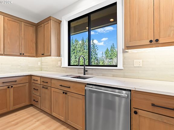 Experience the height of modern living in this custom ranch-style home, located in the breathtaking Hoodview Heights. The chef's kitchen is a masterpiece, featuring sleek stainless steel appliances, elegant quartz countertops with a striking tile backsplash, a spacious island, durable laminate flooring, and a convenient pantry. The luxurious primary suite offers a peaceful retreat with a relaxing soaker tub, separate tile shower, double sinks, and a walk-in closet. The open, airy floor plan includes four well-designed bedrooms, ensuring both comfort and flexibility. Located in the scenic foothills of Mt. Hood, this home perfectly blends natural beauty with modern living. Visit HOODVIEW HEIGHTS HOMES on Saturdays and Sundays from 1 to 4 to tour these exceptional homes under construction now.House amenities: TNG soffits front and back Insulated garage Plywood roof Fully landscaped and irrigated front and back yardsStep lighting throughout home Custom cabinets Hot and cold hose bib Upgraded Delta Plumbing fixtures Upgraded appliances (Frigidaire, Professional Series)Upgraded Windows (Milgard Trinsic) Metal accent roofs Coffered ceilings Crown molding Three tone paint job (interior)