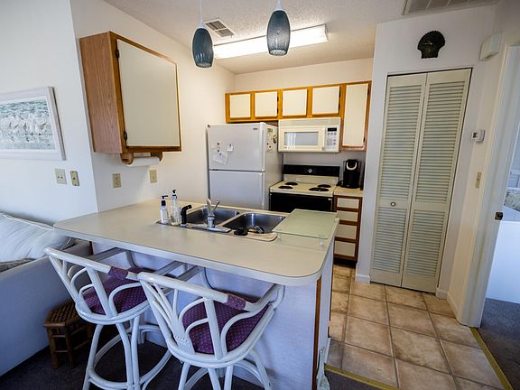 This fully furnished condo is a cozy retreat in sought after Island Green. This condo has a spacious bedroom with open living room and dining area. The vaulted ceiling in this one bedroom gives it a large open feel. Close to beaches and shopping but yet a nice get away at the end of the day! Water and trash included. Call to set up a showing today! Rent includes water, trash and is fully furnished. Owner is responsible for electric. No pets. No smoking.
