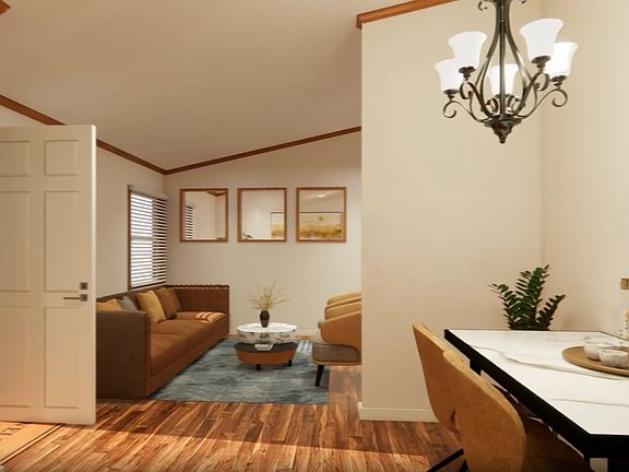 Small front deckOpen kitchen layoutAbundant cabinetryGenerous counter spaceWasher and dryer hookupsAccessibility rampCorner lot