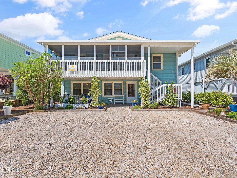 UPDATED & SPACIOUS! This renewed & modernized Sunset Beach Island home is a RARE FIND with 2 complete & separate levels offering a total of 5 bdrms & 3 1/2 baths. The main level is bright & cheerful featuring an open floor plan with 3 bedrooms & 2 baths including a Primary Suite with private bath, updated Kitchen with granite counters, New Cabinets, Custom Island, Stainless Steel Appliances with Gas Range, a screened front porch and back deck. Let your friends & family enjoy independent living on the convenient ground floor level or enjoy established vacation rental income! The spacious living area has tons of seating, a dining space and a half bath that leads to a great Kitchen with full size SS appliances. The happy decor continues in 2 bedrooms that share a full bath, storage space, laundry room and easy access to the outdoor shower in the back. The back yard is a favorite space with carefree synthetic turf that feels amazing on your feet & looks fantastic! This west end location is highly desirable with a short walk to the ocean for breathtaking strolls in the soft sand to Bird Island & the Kindred Spirit Mailbox. Don't miss this opportunity for an Island Life Home that's also an income producer!