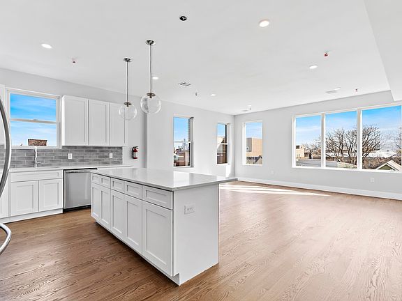 Stunning brand new construction TOP FLOOR 3 bedroom / 2 full bathroom condo with garage parking and NYC views! This ground up new construction home features a thoughtfully designed kitchen with quartz counter tops, shaker style cabinets and top-of-the-line stainless steel appliance package. Living / dining room features high ceilings, large south facing windows and recessed lighting. Primary suite boasts a large floor plan, walk-in closet, en-suite bathroom with dual vanity and large shower. Second and third bedrooms offer generous closet space. Highlights include central a/c, full size washer/dryer, LED lighting throughout, hardwood floors, 9' ceilings and garage parking! Located in Union City near Washington Park, you're just a short distance to the NJ Transit bus line into Port Authority.