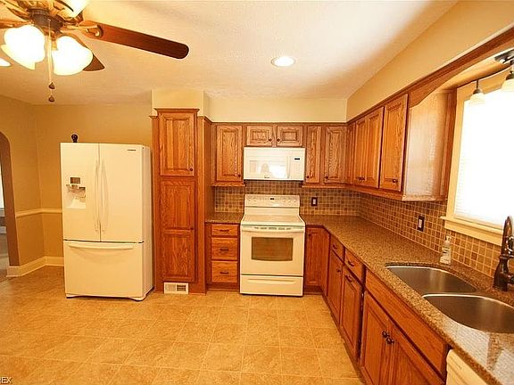 Lovely, well cared for 1,440 sf two-story home is at 418 7th Street NE, Massillon 44646 in Stark County, Ohio. It is located in the Massillon City School District. The kitchen and dinette area have been updated. Spacious kitchen features oak cabinetry with easy close drawers. There is a pantry and two lazy susans. Counter tops are quartz, there is a ceramic back splash and under counter accent lighting. The Samsung french door refrigerator, Frigidaire electric range, dishwasher and microwave stay. There are ceiling fans throughout the home, as well as window blinds. There is a first floor updated half bath and laundry room. The GE washer and dryer stay. Home features a dining room. There are three spacious bedrooms. Second floor bath room has been completely updated including maple cabinetry and a quartz counter. Glass block windows in basement, 100 amp service, central air. Relax and unwind on either the front enclosed sun room or on the covered back patio. Over sized, two car garage with an over sized cement pad. The remainder of the yard is fenced in with one side featuring a privacy fence. The swing set stays. A great yard if you have small children or pets. Call Mike Boylan 330-704-5945 for more information.