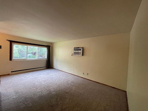 Walk to campus! Fresh paint throughout unit. 2 equal sized bedrooms with hardwood floors. Carpet in livingroom. Wall AC unit works very well! Tenant pays elect. only. Laundry in lower level and free parking in back. Tenant pays electric only. Water, sewer, trash, heat in winter included.