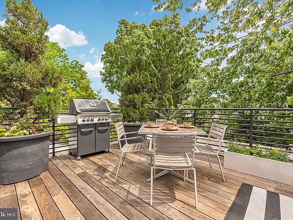 Welcome to this sensational, immensely private penthouse residence that lives like a single-family home and a treehouse overlooking Eastern Market and downtown DC. Bathed in natural light streaming through skylights and oversized windows on both sides of this top-floor, full-floor unit at The Prout, an award-winning boutique condominium, this penthouse is truly one-of-a-kind. Completed with meticulous attention to quality and functionality, this residence was custom built for the developer himself, making it the crown jewel of the building. Unit 401 features two expansive, private roof decks totaling over 650 SF and facing east and west to capture both sunrise and sunset. The large rear terrace off the kitchen and living space features a gas grill connection, space for outdoor living and dining, a pet turf area, and lush planters set atop beautiful Ipe decking. The charming front terrace off the primary bedroom is a sanctuary in the city with a completely private sitting area surrounded by a lush roof garden and gorgeous western and southern views. Inside the home, abundant recessed LED lighting and motorized shades allow for total control of your environment via Lutron smart dimmers with voice command and programming capabilities. The chef’s kitchen impresses with panelized Bosch appliances, a gas range, custom cabinetry with many hidden storage and organizational features, and a 3-inch solid wood butcher block countertop on the island that combines practicality and warmth. A half bath off the kitchen is perfect for entertaining and allows the two en-suite baths to remain private. Next to the half bath, the laundry room features tons of cabinet storage, counter space, and an LG washer and dryer. The entire building was constructed with above-standard insulation and soundproofing, high-efficiency Trane HVAC systems, and Nest thermostats. The primary suite offers gorgeous western views overlooking the private front terrace, dual closets, and a luxurious en-suite bath with a double vanity, Hansgrohe shower fixtures, and elegant floor-to-ceiling marble tile. The second bedroom features built-ins with deep drawers for additional storage and a custom Queen-size Murphy bed for ultimate flexibility to use this space as a home office, guest bedroom, fitness room, or a combination thereof. With another beautiful en-suite bath, generous closet space, and direct access to the rear terrace, this second suite checks all the boxes. In addition to all the amazing features of the home itself, the building’s shared rear yard is an urban oasis complete with a gas grill, gas fire pit, and a large communal dining table for laid-back evenings or weekend gatherings. In addition to being pet-friendly, this prime Capitol Hill location is steps from Barracks Row, METRO, and Eastern Market.