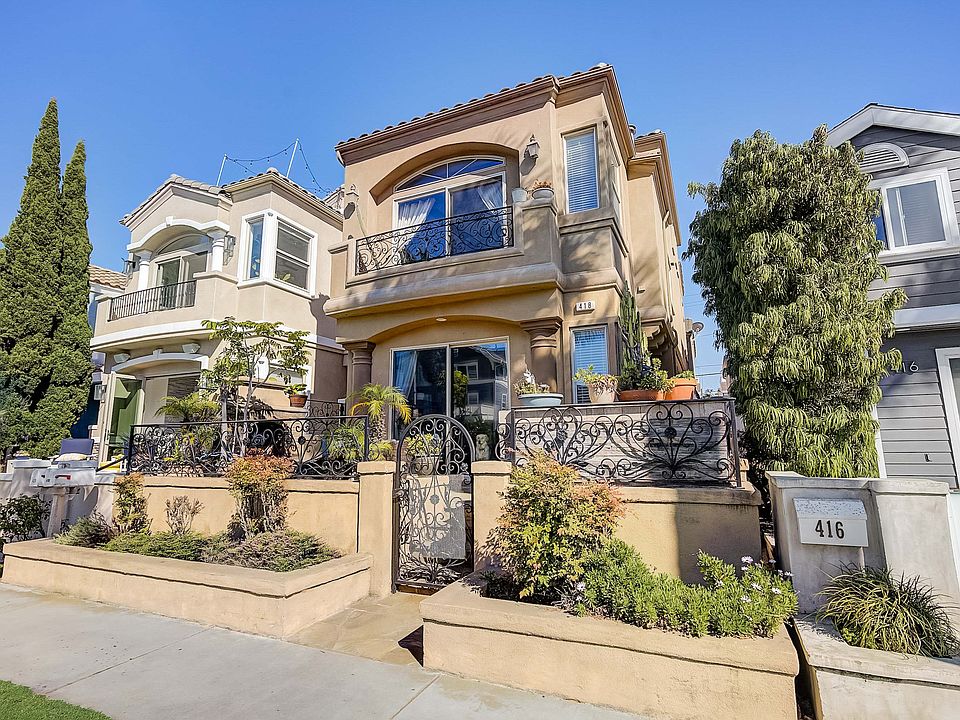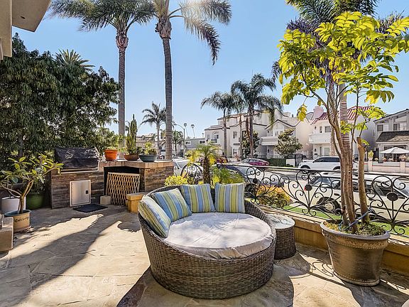 Experience coastal living at its finest with this exquisite custom-built home, situated a mere 4 blocks from the pristine beach and within easy walking distance to vibrant Main Street. Step inside to discover an expansive 3-bedroom layout, complemented by an additional bonus room that could double as a fourth bedroom, complete with its own bath. The home's flowing open-concept design is adorned with custom moldings throughout, reflecting a perfect blend of style and sophistication. At its heart lies a stunning kitchen, boasting travertine floors, granite countertops, stainless steel appliances, a six-burner stove, built-in refrigerator, and an upgraded cabinetry setup. The inviting kitchen space seamlessly transitions to a picturesque patio, where the calming sound of a tranquil waterfall beckons. For the media enthusiasts, a second-story den features soaring vaulted ceilings and integrated surround-sound speakers. Next to it, a handy computer niche provides a perfect spot for work or study. The master suite promises relaxation, with its cozy retreat area, private deck access, and a spacious bathroom equipped with a full tub, separate shower, and walk-in closets brimming with upgrades. Your furry friend hasn't been overlooked either; an innovative dog door in the downstairs laundry room can be remotely operated, leading to a secluded dog run complete with specially designed grass and drainage. Additional standout features include mirrored closet doors, ample built-in garage storage, and an enchanting front patio that boasts an integrated fireplace and BBQ setup. Ascend to the third level to find a versatile college dorm-style room, equipped with a full bath and a sprawling patio, making it perfect for guests or extended stays. Experience the true essence of beachside luxury with this unparalleled home, where every detail has been thoughtfully considered.