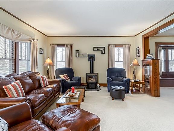 Wow!!You will fall in love w/ this spacious home w/ tons of character from the minute you pull into the driveway & see the welcoming front porch complete w/ porch swing to enjoy your lemonade on a quiet Sunday afternoon. As you enter the home, you see the grand staircase taking you upstairs or turn to your left & enter the large living room via the original pocket doors! The living room includes a wood burning stove & plenty of built ins to admire. It connects w/ the large formal dining room w/ more built in beauty! Off the dining room is the completely updated kitchen that includes a built in table w/ extra cabinets on both sides!Upstairs you will find 4 large bedrooms, an updated full bath, & a large foyer with a built in linen storage and a laundry shoot! The basement has plenty of room for storage and a finished area for man cave, office, or playroom. Outside you have a new deck to enjoy the outdoors and a HUGE garage with enough room to park 6 cars!!This home will not last!