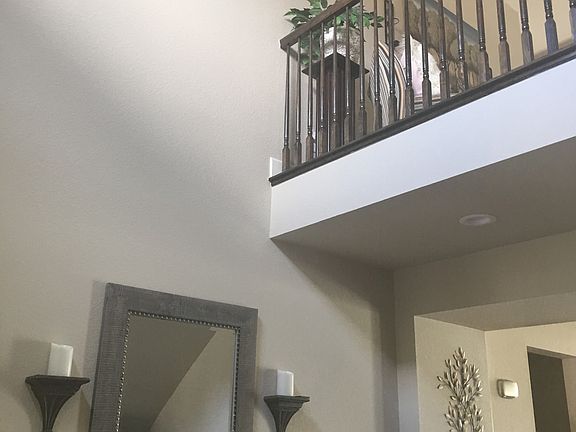 bedroom with coffered ceiling, 8' doors on main level, 3-car split garage, stucco and stone exterior with tile roof. 5 bedrooms. Professional landscaping. Home upgrades throughout. Whole house water filteration system. Radon system. Formal dining room. Hardwoods throughout. Large custom front patio. Professional landscaping. Fireplace. Office/room flex room Highend glass doors at front door and garage. Upgraded throuhout. California closets. Large Water fountain in back.