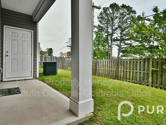 Awesome 3 bedroom, 2.5 bath townhome in the gated Harbison Grove neighborhood in NW Columbia. Covered front porch, reserved front parking, and rear covered patio and storage room in the small backyard area. Inside boasts luxury vinyl plank flooring and high ceilings throughout downstairs. Granite counter tops in the kitchen and both full baths. Open floorplan living and dining area open to the kitchen island bar counter. Kitchen also features a pantry and included stainless steel smooth-top stove, built-in microwave, dishwasher, and refrigerator. Half bath and full-sized laundry room downstairs. All bedrooms upstairs. Primary bedroom suite has a walk-in closet and full bathroom w/ tub/shower. Two additional bedrooms off the hall connected by a shared 2nd full bathroom. Convenient to I-26 & I-20, Harbison area amenities, and Lake Murray. Richland 1 schools.