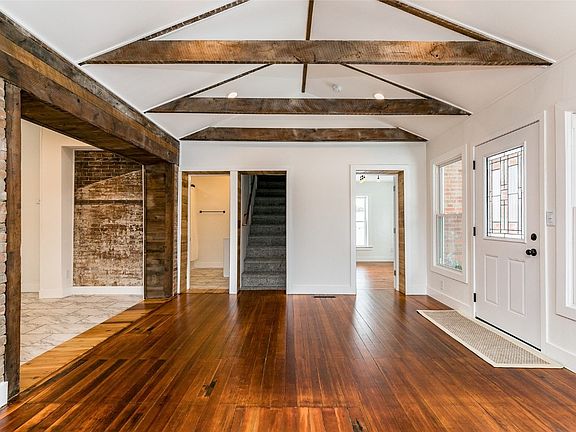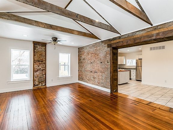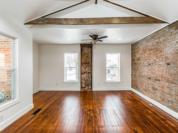 Welcome to this beautifully redone 1870 historic brick home. This masterpiece was torn down to the studs and everything is new, except for just what you would want to be enhanced and put in the spot light, like exposed brick walls, beautiful beamed ceilings, wood enhanced doorways, and original hardwood floors. If you are looking for the charm and character in a updated to modern home, you found it. Step onto the new front porch, and through the new sparkling front door to this amazing living room with brick walls, gleaming hardwood floors, vaulted beamed ceilings, new deep set windows, and all new insulated walls. The main floor master has all that charm and a walk in closet and more original hardwoods. One of the main floor bathrooms is all new! large tall shower, toliet, vanity, flooring, and custom shelving. Go upstairs to two wonderful bedrooms all with new everything and nice sized lighted closets. The transition through all the doorways have amazing orginial wood lined entrances. The showstopper transition is from the living room into the big, bright vaulted dining room with skylight and lighted brick walled art niche. Ample room for a large table, buffet or dining set. The vaulted and huge kitchen has all new stainless steel appliances, mobile island and so much counter space! Its a dream kitchen! Another full bathroom as you head to the back door with main floor laundry. Go to the basement with beautiful wide wood steps into a huge new basement! Oversized, wooded yard, new plumbing, electrical, furnace, air, walls, paint, flooring, addition, shed, floating deck, roof, you name it, it was done! Too much to mention! Its a rare and unique find that was restored for the future but preserving the past.