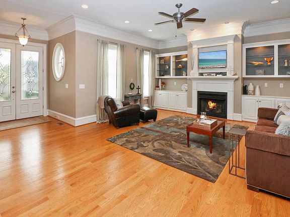 - Great Room: Molding, Entertainment Center, Floors-Hardwood, Ceilings-High (over 9 Ft), Ceiling Fan, Recessed Lights