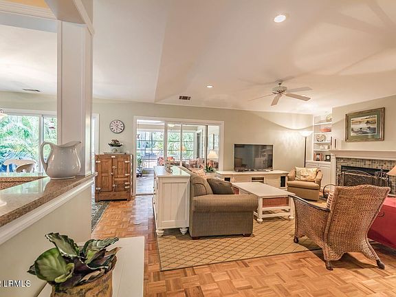 Enjoy Low Country living in this charming ranch on beautiful Dataw Island. This adorable 3-bedroom 2 bath home has been lovingly maintained and provides for easy living. Come enjoy the gorgeous fairway views of Morgan River #18 from your Carolina room or outdoor patio. The Kitchen features quartz countertops, stainless steel appliances, and a farm style sink and is open to both casual and formal dining areas. The Great Room provides a fabulous place to entertain and relax with a wood burning fireplace. The primary suite on the back of the home offers great views and includes an ensuite bath recently updated with a large walk-in shower, double sink vanity, and water closet. Two additional bedrooms, one currently used as a den/office, a full bath and a large laundry area complete