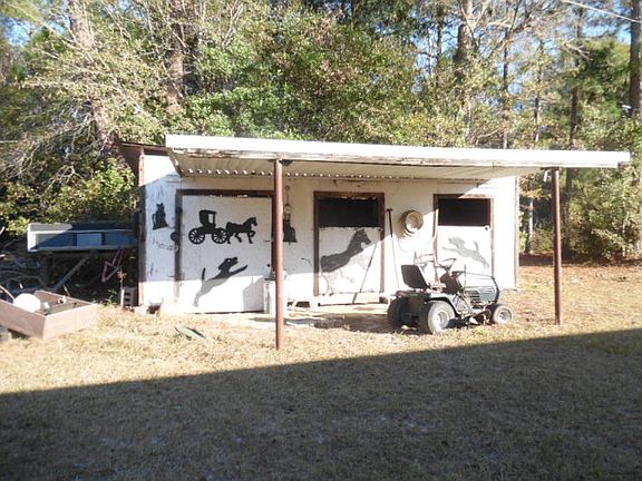 Perfect small cottage especially if you like/work at Kitty's Flea Market! 2 full lots fully chain link fenced. 1 Bedroom, open kitchen/living, three closets of hallway for linens, clothes and stuff. Shower unit only - no tub. 10' ceilings in kitchen/living. Front carport doubles as a covered patio. Old double wide front porch still onsite. Barn in back gives lots of storage. 2 window units - one NEW. Appliances stay. Laundry hook-up in utility room accessed on the side of the building.