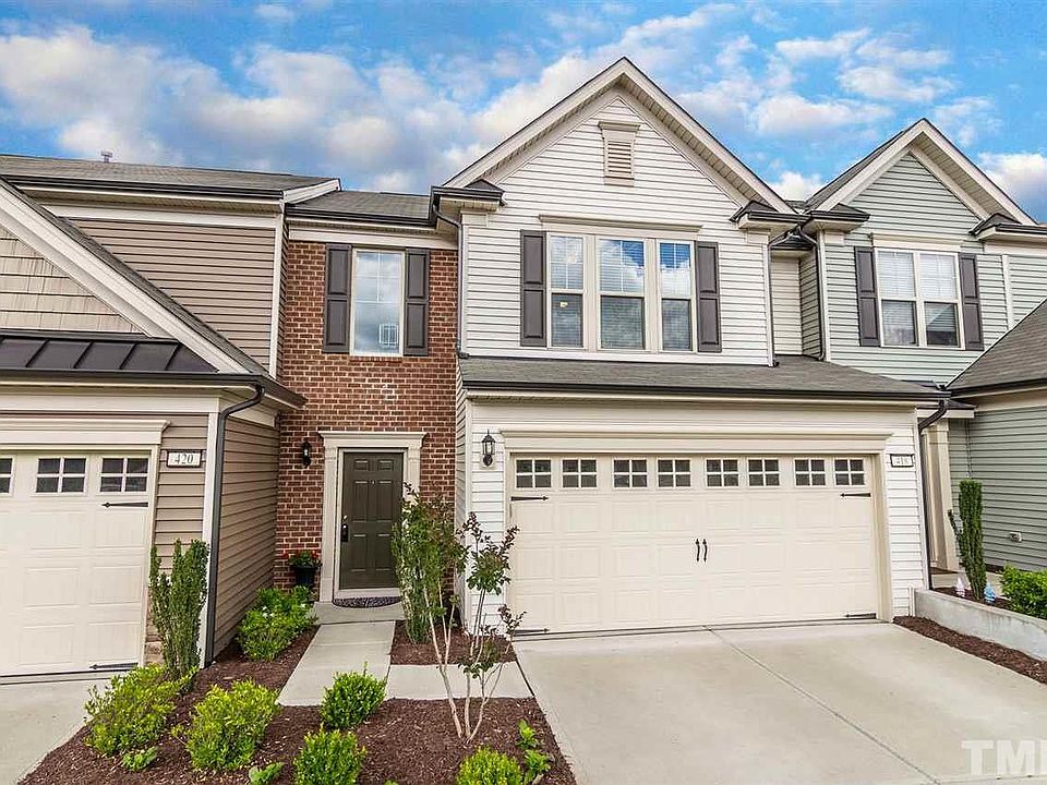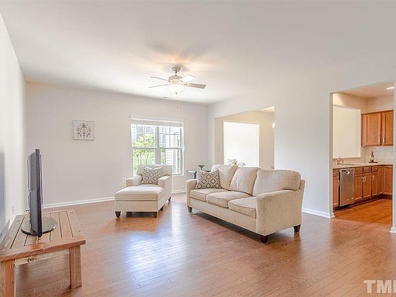 Gorgeous Townhouse! Open & bright floor plan with the Sun Room Option. 1st Fl; Engineered Hardwoods, 2 Story Entry & Dining Rm. Kitchen w/upgraded granite, tile backsplash & gas range. Master Suite: large walk-in closet, over-sized shower & dual vanity w/ granite. 2nd Floor Laundry, Ceiling Fans throughout. Patio and landscaped yard offering open views. 2 Car Garage w/keypad. Prime Brier Creek area w/ Wake County Schools, Leesville High. Walk to new Harris Teeter. Community: Pool, Play Area, Park.
