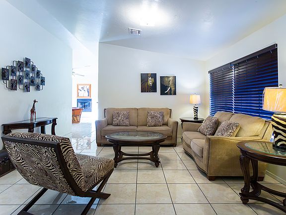 FULLY FURNISHED RENTAL!! Indulge in this beautiful ranch style MOVE-IN READY home. Nestled in serene Rio Rico with mountain views. Generous living areas in this well-cared-for 3 bd 2 bth. High ceilings, tile flooring throughout, a spacious kitchen with abundant storage, 2 car garage. A tranquil oasis perfect for relaxing and unwinding. Set on 1.19 acres, RV space available and is located just minutes from I-19 with easy access to shopping, schools, and outdoor activities. 1 year lease. Tenant pays all utilities.