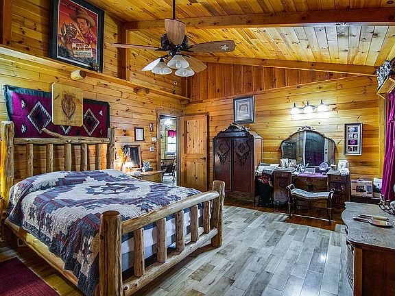 Beautiful custom built log home on 30 acres, just minutes from town. Home is situated on 30 acres, 4 stall barn with full bath and tac room, fence and cross fenced pasture, shop, additional 30 x 40 metal storage building, 20 acres of timber in current forestry plan. Almost 1/4 mile of road frontage on very quiet country road. Year round creek with several waterfalls, small pond, and plenty of wildlife. Very unique home and property! Also has an 1800 sq ft doublewide home on the property that provides a great rental income stream.