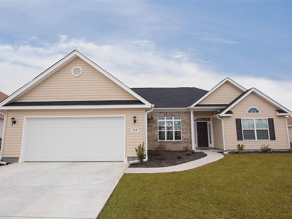 You don't need a dictionary to find the definition of stunning, just come to 418 Camrose Way for a firsthand example. This meticulously maintained masterpiece of a home is just over a year old and sure to capture your attention. Upon entry, the common area is comprised of a well laid out dining area and living room. Complete with manufactured hardwood floors, cathedral ceilings, ample, natural light, and views of the pond in the rear, the openness of this home is unmatched. Adjacent to the living area is the spacious kitchen with an additional dining area, beautiful cabinetry, and stainless steel appliances. This home offers a split floor plan. The master suite with tray ceiling, walk-in closet, and ensuite master bath is located opposite of the additional two spacious bedrooms and second bath. This home is tucked away in Forestbrook Preserve off of Forestbrook Rd. Convenience is key with easy access to 544 and 501, just minutes to the beach.