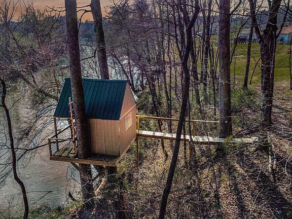 Spectacular family home with private boat ramp on over 500 feet of riverfront and mountain views! Step into this bright 4 bedroom/3 bath 2195 sq ft home and you'll be greeted by an open floor plan with a double-sided stone fireplace (with 2 sets of gas log inserts) cathedral ceilings and hardwood floors. The large kitchen has a ton of storage, fitted with stainless steel appliances (new dishwasher 2020). Sliding glass doors open to the back BBQ deck that has a propane grill, firepit and container garden for herbs. Large living room, dining area for formal dinners and sitting area for sitting and gazing out over the river. Split floor plan lends privacy to two bedrooms with large closets and a spacious full bathroom on one side of the house, a third bedroom with a full bath on the other side of the house, as well as the master suite; spacious room with private doors out to the back deck and a private remodeled full bathroom (2022) with private water closet. The two-car garage is spacious and has yet another deck out the back, the best spot for a private spa to enjoy your riverside evenings. The crawlspace is very roomy which allows even more storage, with a vapor barrier installed in 2020 and new rigid insulated duct work in 2021. AC unit replaced in 2018, and leaf gutter guard system installed in 2021. Enjoy time on the beautiful Ocoee by fishing from the deck over the river or launch from the private 90-foot concrete boat ramp. Float the river in the summer and get out right at your own home! Have more fun in the 12x8 treehouse, easily accessible with a sturdy wood bridge, it features solar power, a queen futon, a twin size loft and covered 4 ft porch that sits right over the river, zip line from the treehouse along the river or try out the smaller zip line in the wooded area behind the house. Walk the trails along the wooded acreage, enjoy fresh snacks from the variety of fruit bearing trees and plants or take on a gardening hobby. The new 10x20 shed has lots of room for yard machinery and lofts for seasonal storage, lean-to behind the shed for outdoor storage. Plenty of additional gravel parking space for boats or RVs with a 30-amp hookup. Have fur babies? The perimeter of the 2.77 acre property has a buried invisible fence. This home is located at the end of a dead-end road in a quiet neighborhood, and the Ring security cameras placed on the back deck and road-facing side of the house stay with the house. Come see right away, this fabulous riverfront adventure at home won't last long.