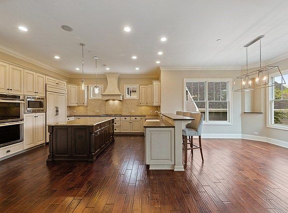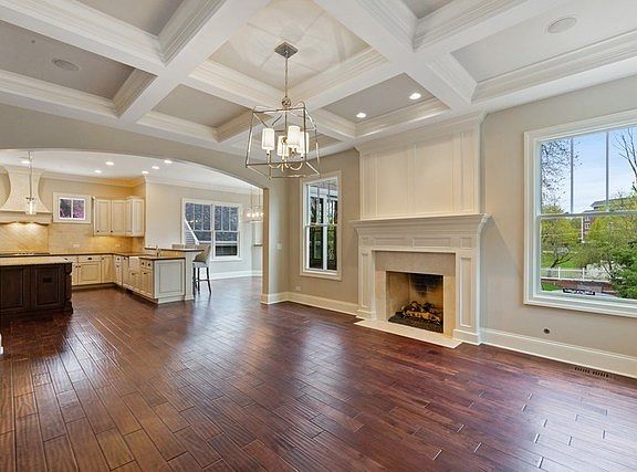 Above all others in this price class! Ten foot ceilings, open floor plan, stunning cabinetry, coffered ceilings, walnut floors, freshly painted top to bottom & fabulous new lighting! Huge chef's kitchen opens to the family room. First floor office. Spacious master, spa bath w/ steam shower & fabulous custom walk-in closet. Four additional beds including third floor retreat. Second floor laundry. Sunlit basement offers wet bar, rec room, exercise area, 6th bed, full bath & playroom. Unheard of 3 car attached garage. Plus your own private back yard retreat. Gorgeous 225 ft. deep lot backing to a park. Wood burning fireplace, b/in BBQ w/ seating. Fenced yard with a gate to short cut to the train. Professionally landscaped, mature trees, irrigation system and outdoor lighting. Located on one of the most family friendly streets in town. Priced aggressively! Don't miss this opportunity!