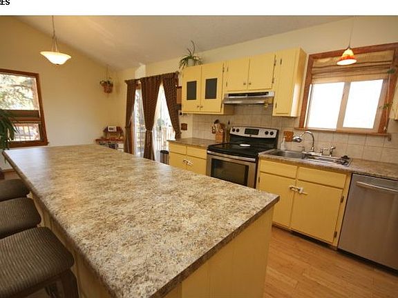 Best value in the neighborhood! Very well maintained home (the owner is a home inspector) with many updates incl NEW SS appl, new kitchen counters, granite counters in ma bath, bamboo wood floors, fresh new paint & immaculate tile work in the ba. Open floorplan with vaulted ceilings. Also a versatile home with a walk-out bsmt with separate entrance & 220V service...possible mother-in-law suite. Enjoy beautiful Lumpy Ridge views from your large deck built around mature evergreen trees.