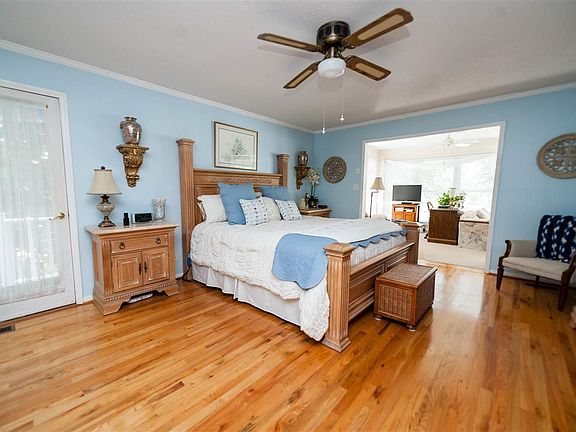Magnificent Lake Views from Every Room in the house! Beautiful, one owner home that has been very well maintained and ready for new owners. Fresh paint, newer countertops and beautiful hardwood floors are just some of the features this home has to offer. All bedrooms are large and offer very spacious closets as well as gorgeous views of the lake. This home is situated on a quiet cove with private dock as well as a quiet street with easy access to major highways and shopping yet tucked away in a private setting. The yard is meticulously maintained with tons of beautiful flowers, established trees & Koi pond. Enjoy the large wrap around porch or patio to observe all that nature has to offer. Lot and 50x60 Metal building across the street are part of this sale. Don't overlook the workshop! This home is a must see.