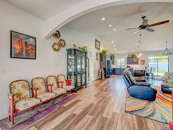 Step inside this thoughtfully designed ranch-style home on the edge of town. This spacious 4 bedroom, 2 bathroom home is located on the edge of the nature area with a pond allowing for plenty of animal sightings and bird viewings. The vaulted ceilings in the main area allow for ample space to hang your artwork and other keepsakes. The living area flows right into the kitchen area; complete with a three quarter wrap around bar counter making it a great space to host guests. There are three bedrooms and one bathroom located on the east side of the house; while the primary bedroom has its own patio located on the opposite side of the house next to the nature area. This is one house you won't want to miss! All measures are approximate.