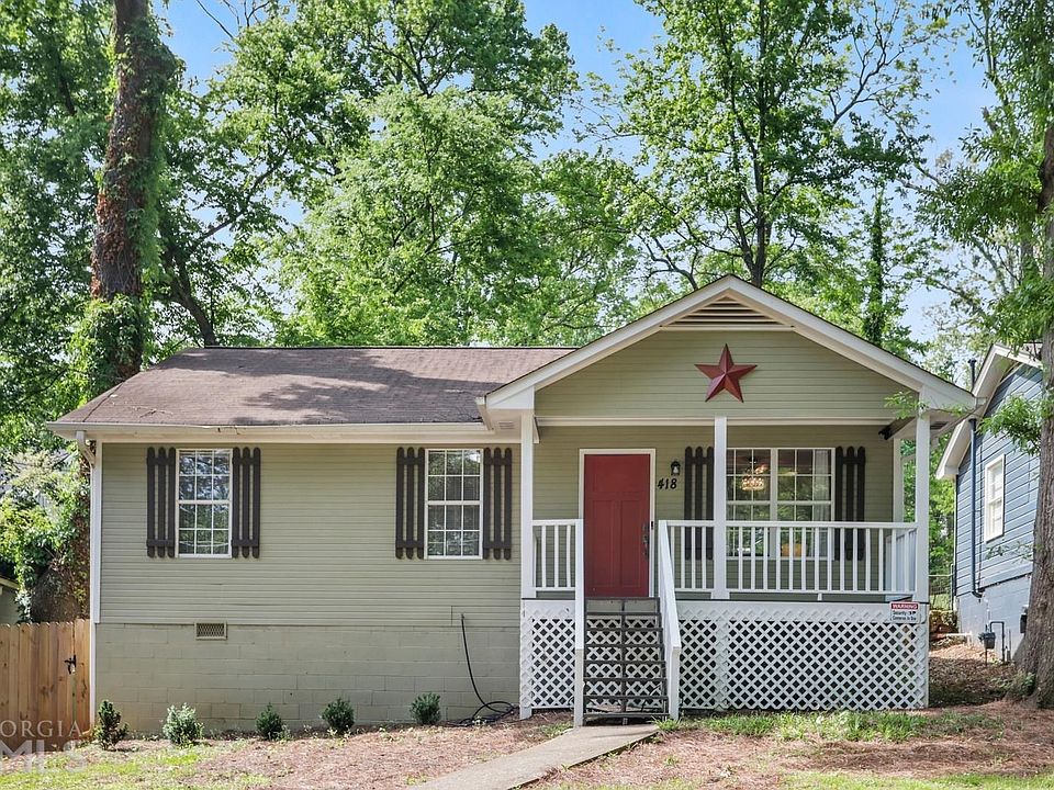 OUT OF STATE SELLER WANTS FAST SALE !! This is your opportunity to live in Historic Hapeville-The City of the Arts ! Recently renovated home with solid wood kitchen cabinets, granite counters, tile backsplash, updated A/C and roof. Hard surface easy to maintain flooring throughout. Bathroom completely renovated with upscale marble top vanity. Three bedrooms- King size master bedroom with ceiling fan. Outdoor living at its best....Rocking chair front porch, great BBQ deck, and fenced yard for kids or pets. Shed and alarm stay with Ring doorbell. Minutes to downtown Hapeville, Jess Lucas Park, Delta Airlines Headquarters , Porsche Experience, and Hartsfield-Jackson Airport. Close to wonderful restaurants, breweries, coffee shops. Dog park, soccer fields. Quick access to I-75 and 85 and downtown Atlanta too. Atlanta Business Chronicle recently termed Hapeville "Southside City on the verge of historic population growth".
