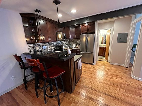 New bathroomFresh paint colorsWood floorsAir conditioningCustom kitchen barStainless steel appliances