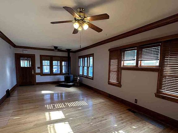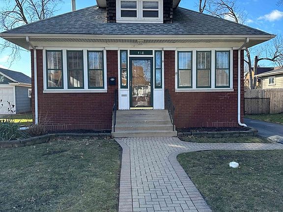 Charming, completely remodeled all brick bungalow, located west of the Fox River. Custom kitchen, hardwood floors throughout, freshly painted with oak crown molding in the living room / dining room area. Original oak entry doors complete with beveled glass! Cozy wood-burning potbelly stove in the living room. Full Master Suite with WIC zoned heating, a jacuzzi tub & separate shower. Enclosed front porch w/ceramic tile. Full, partially finished basement with 1/2 bath and laundry room with new washer and dryer. New in the last 10 years - Furnace (2014), A/C (2019), Tear-off garage roof (2022.)