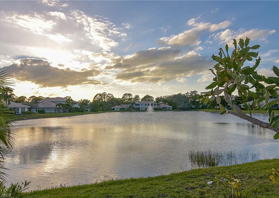 Fabulous long lake & fountain view with western exposure to enjoy those outstanding Naples sunsets! Mere steps to the clubhouse yet far enough for privacy. This West of 41 2 bedrooms, 2 bath unit with tile in main living areas, plantation shutters, storm shutters for all windows including lanai and full courtyard entry is just waiting for you to make it yours! Imagine being able to bike to 3 beaches and living in a neighborhood with a group of incredibly friendly people that want nothing more than for you to join in! Call today!