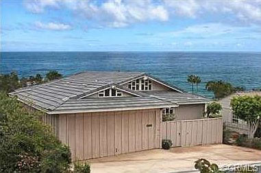 Enjoy expansive ocean views from most major rooms in this mid-century residence. With neighbors on only one side, the generously sized, elevated parcel offers significant privacy. All living spaces and the master bedroom are situated on the walk-in street level with no stairs into the house or garage. The open concept floor plan with vaulted ceilings and walls of windows gives a bright airiness to the residence. View decks adjacent to the kitchen, dining and living room provide a desirable extension of the interior space. This property represents a compelling opportunity for current enjoyment or future improvement and development.