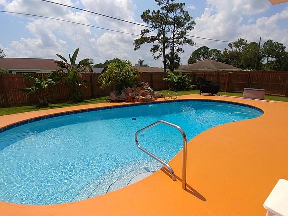 Pride of ownership shows in this immaculate kept pool home located in desirable NE Palm Bay. Gorgeous 10' pool with rock waterfall has recently been completely renovated. Home offers formal living room, large eat in kitchen and a large beautiful family room. Family room has vaulted wood ceiling and a 20' wall of argon gas sliders leading to the pool. The Attached 17.5x16 enclosed porch is great for entertaining. This home has it all inside and out. Security system, new electrical panel, over sized 24x24 garage with new garage opener. Privacy fence is 1 year old, irrigation system is 3 years old, roof is only 5 years old. Home is equipped with aerator, new resin tank, and complete water softener system. All you need is right here waiting!