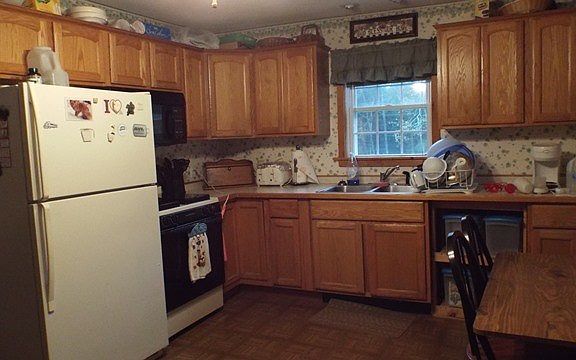 Nice 2 story country home. 2 or 3 bedrooms & 1 bath nice oak kitchen.2 car detached garage. Large yard with fishing stream.