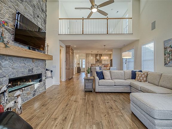 Rare Opportunity!!Gorgeous Traditions of America Richland! With a fantastic view of rolling hills and green space! This home has only been occupied for 5 months, so virtually a new home!! This is the Betsy Ross model with the expanded living room and front porch. Fully loaded with MANY upgrades. Fabulous warm decorator tones throughout this bright and cheerful home, Wood Blinds just added. LR TV included. Stone floor-to-ceiling fireplace. Main level has master bedroom with elaborate full-tile master-bath, also main floor Den that can be used as a bedroom. 2nd floor has large loft area with 3rd bedroom and full bath, plus large unfinished storage/furnace room. HOA takes care of all exterior maintenance as well as a beautiful 6000 square foot clubhouse w/heated pool and spa, pickleball court, yoga studio, fitness center, clubroom, bocce, billiards, sports bar, and lounge. One occupant must be 55 years old!
