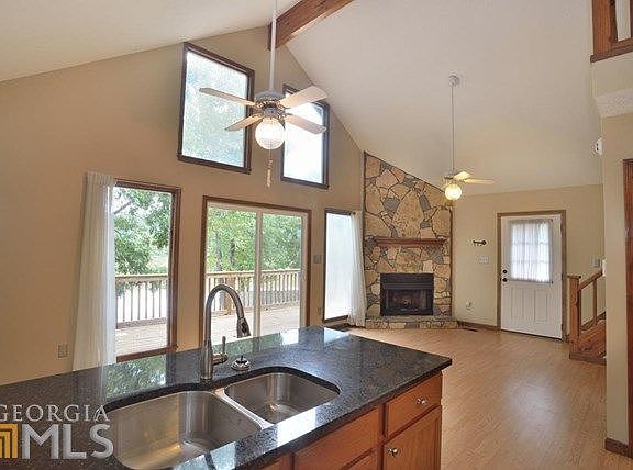 WHAT ARE YOUR SUMMER PLANS? How about making this adorable home part of those weekend getaways! Affordable ownership on beautiful Jackson Lake! Decks wrap around two sides of the home*2car detached garage w/storage above*charming bungalow features quaint and practical low maintenance living...perfect for that weekend home*family room on main floor has cozy stone fireplace*one bedroom and one full bath on main*kitchen & breakfast area complete the space*upstairs is loft...perfect for bunk, play room or study*lower level features tons of windows overlooking lake*another bedroom and bath and another living space with outdoor patio creating yet another living space! DEEDED LOT! Recent Upgrades: Septic tank emptied less than a year ago and brand new pump installed 3/17 Fire Pit Outdoor Grill Built in closet in main bedroom Steps from dock into lake for easy access Fenced in back yard and gate from porch (great for kids and pets) New Security lights on all corners New toilet downstairs