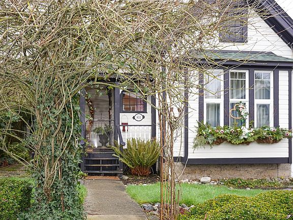 This special home and property will exceed your expectations. Built in 1909 and lovingly restored by and for these proud Owners of the past 30 years. Opportunity knocks with this one in its connective location and authentic enjoyment. Enter to vestibule and parlor, walk through spacious hall area to step down open kitchen, living, dining. The high ceilings and quality custom finishings with windows and glass doors makes this space unique and bright. At grade step out to your private patio(s) and yard oasis. Also on the main level is the 2nd bedroom and a full bath. Take the steps up to the primary bedroom with three piece ensuite overlooking the trellis of the garden with accents and custom features for quiet moments. Accessed from the exterior and separated from the home find a comfy cozy suite space offering 3rd bath and light kitchen. All offers quality features too many to describe except to say will not disappoint. The yard space is private and inviting.