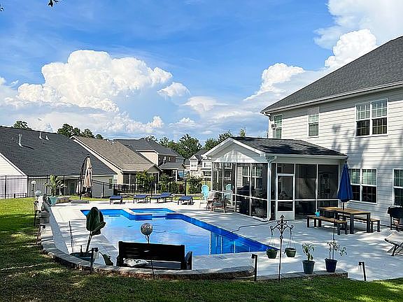 Welcome to one of Lexington's most sought after neighborhoods, Summerlake! This stunning craftsman style home located MINUTES from Lake Murray is nestled on a beautifully landscaped, oversized corner lot on a family-friendly cul-de-sac. Featuring 5 bedrooms and 3.5 bathrooms this home is not lacking for space. Upon walking into the home you will be greeted by the spacious two-story foyer with soaring ceilings, gleaming engineered hardwood floors and an abundance of natural light. The primary bedroom is on the main level and is a serene retreat, with a spa-like ensuite and walk-in closet. The kitchen is sleek and spacious and has plenty of room to entertain. Walking into the backyard you will go through the screened-in porch that leads you into your own private oasis with a saltwater pool and hot-tub that beckons relaxation and fun. Upstairs you will find 3 other true bedrooms and 2 full bathrooms. The 4th bedroom has a full closet and could be used for an additional bedroom if needed or a media room, craft room, office or upstairs playroom AND there is even an oversized FROG. This home really has it all! Summerlake amenities include a 15 acre stocked fishing pond, playground, pool, clubhouse, boat rv storage and a walking path to Beechwood Middle School.