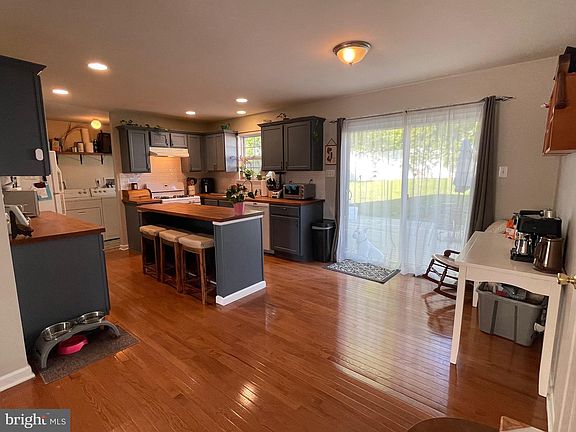 Seller accepted an offer. Back up offers only. This home is a beautiful ranch style that is waiting for new owners. There is a spacious master bedroom with an on-suite full bathroom and a second bedroom with an adjacent bathroom that has been newly renovated with a jacuzzi tub and shower. The large living room has updated light fixtures and a ceiling fan and a built-in electric fireplace with a live-edge wooden mantle. The newly renovated kitchen has butcher block countertops sealed with resin and a farmhouse sink. There is a large island with barstool seating included and multiple outlets in the kitchen and island. The dining room is well light with natural light from the large sliding glass door that leads to the huge deck and has a closed pantry featured! The laundry room is located conveniently on the first floor. This home features a white privacy fence and an attached single-car garage. The unfinished basement is waiting for some renovations to allow its full potential to be shown. There are large windows throughout the home which allow natural light throughout, but black-out shades are installed in the master bedroom for those who enjoy sleeping in. One of the best features of this home is the gorgeous wooden floors throughout the living and dining areas with comfortable carpet installed in the bedrooms. This home is equipped with smart features and a Google Nest camera for added security. The quiet neighborhood this home is located in is within walking distance of many places to eat, shopping and commodities, an elementary school, and would make the perfect home for a family or a single person. This home is being sold as is.