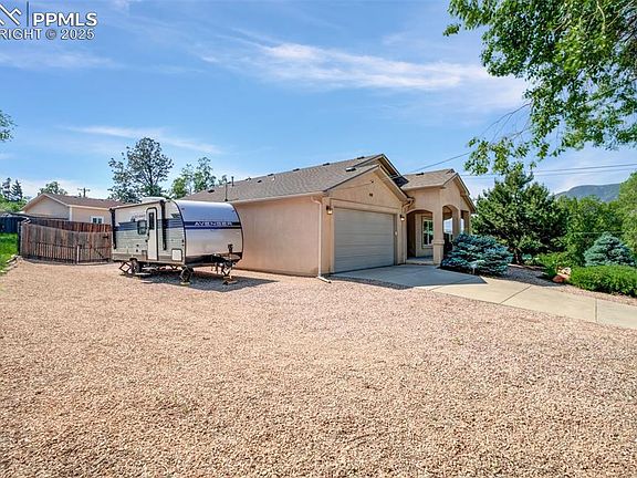 Nestled in the popular West Side of Colorado Springs, this unique, updated, ranch-style home sparkles with quality and solid craftsmanship like a polished jewel! Just minutes from all the popular local attractions and with jaw-dropping views from every window, this home is one-in-a-million…. Perfect! The gorgeous, modern stucco design offers quality and superior energy efficiency. The home sits on 1/3 acre, beautifully treed lot giving you space to breath as well. The grounds, though generous, are very low maintenance and xeriscape design with a huge perennial pollinator garden adorned with colorful iron sculptures from a local vendor. Raised, irrigated garden beds offer fresh vegetables, herbs and flowers in the spacious fenced back yard as well as a grassy oasis for the kids and fur kids as well! The interior of this Hilltop beauty is open and airy with high-quality windows to take in the panoramic views of Cheyenne Mountain, Mount Baldy and Pike’s Peak. Listen and you will hear the bells of the famous Broadmoor Resort as they chime the hour. Home interior shines with freshly finished, natural wide-plank Oak floors and newer carpet in the bedrooms. The appliances are stainless and granite countertops in kitchen….this is a must-see, one of a kind, west side treasure!!!