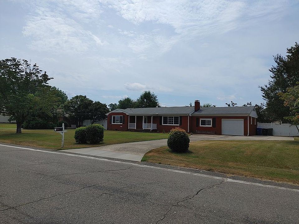 Beautiful red brick ranch style home with 3 bedrooms, 2 full bathrooms, a one car garage, white vinyl privacy fenced back yard, in-ground pool, silhouetted by beautiful dogwood and Japanese maple trees and crape myrtles. Only 1/2 mile from Fort Bragg, 2 miles to schools and minutes from shopping malls. Recently renovated to include new roof, heating and air system, new plumbing and ducting. Includes gas fire place and open floor concept with hardwood floors throughout. Large kitchen bay window overlooks covered patio that adjoins the in-ground pool patio with plenty of area for entertaining. Backyard oasis includes a beautiful brick pond and fountain. Outside storage building and plenty of attic storage. Additional parking pad with extended driveway. Spiral staircase access to finished basement which also includes walk out access to back yard. Dish washer, stove top, wall oven, and refrigerator included.