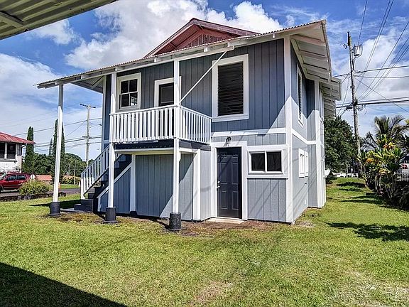 Breezy, trendy, rustic, newly renovated and furnished ground level apartment (2 bed, 1 bath) for month-to-month rent. Fully equipped kitchen includes cookware, coffee maker, glass ware, dinner set, cooking utensils, spices. Beautiful stone-tiled shower, industrial exposed rock wall in living area, gorgeously stained rafter ceiling, new hardwood floors, and a shared washer/dryer. Located in a family-friendly neighborhood, this apartment is central to downtown Hilo, Hilo Medical Center, and the University of Hawaii at Hilo. This cozy space has two points of entry/exit, has been treated for termites and other pests, and includes a bug zapper and three portable oscillating fans for additional airflow. Located less than two miles from downtown Hilo, KTA grocery store, Target, Walmart, Home Depot, local restaurants, nightlife entertainment, Hilo bay front (paddling, sailing, fishing, surfing, etc.), and less than three miles from Rainbow falls, Boiling Pots, Honoli'i surf/bodyboard beach, several beach parks, The Pacific Tsunami Museum, the astrology center, and other historic/educational sites. Free parking under a covered carport for one car. Smart TV access to Netflix, Hulu, Disney+ & More! Month-to Month rental. Rent due in full on the 1st of each month. Lease terms are flexible. Utilities are divided by number of tenants & billed monthly (water, sewer, electric, trash, & wifi). No Pets. No Smoking.