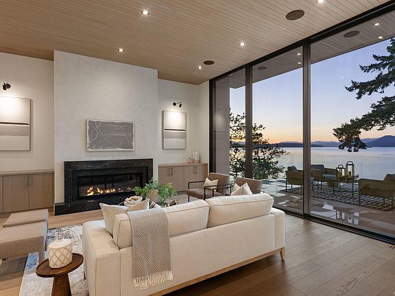West-facing waterfront estateCustom millworkHeated partially covered sundeckOutdoor kitchenMedia roomTemperature-controlled wine roomFloor-to-ceiling windows