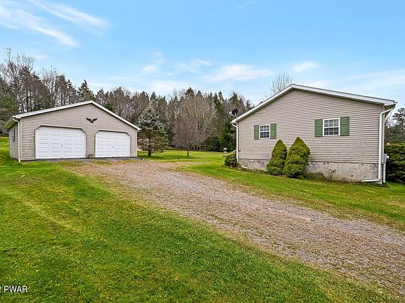 MINT CONDITION, SPRAWLING 3 BEDROOM, 2 BATHROOM RANCH ON 1.22 ACRES! GORGEOUS, PRIVATE SETTING! Located just minutes from Lake Wallenpaupack with easy access to shopping, restaurants & more! Open floor plan with large primary bedroom, attached bathroom and 2 additional large bedrooms. One level living at its finest! Spacious, unfinished lower level is heated & previously used as a woodshop/hobby room. Perfect opportunity to turn this space into a recreation room, family room, or bonus living area. Beautifully landscaped yard with an oversized detached 2 car garage. Move in ready! Make it your own today!, Beds Description: Primary1st, Baths: 2 Bath Lev 1, Eating Area: Dining Area, Beds Description: 2+Bed1st