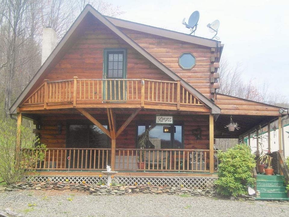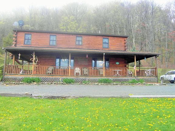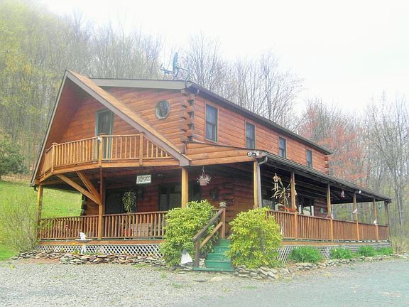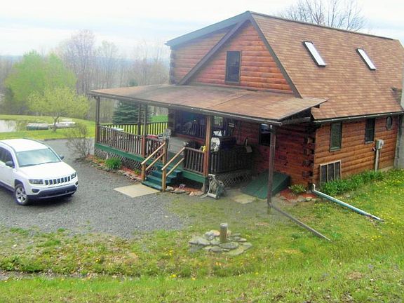 Looking for a log-home in the mountains, look no further! Offering privacy and seclusion, this home sits on 26.97 acres, with a private pond and endless mountain views. 2-3 bedroom, 1.75 bath home with skylights and knotty pine throughout. The kitchen boosts plenty of cupboard space, oak floors and stainless appliances. The living room features a custom built stone hearth and woodstove, perfect for those chilly nights! An added bonus to this property is the 30×40 foot over-sized garage with 100 amp electric, a handyman's delight.