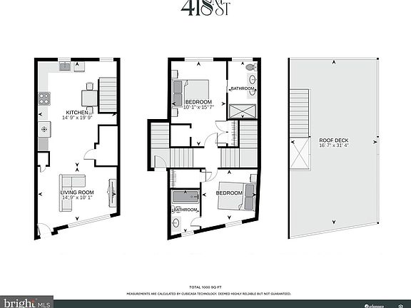 - Total interior livable area: 1,000 sqft