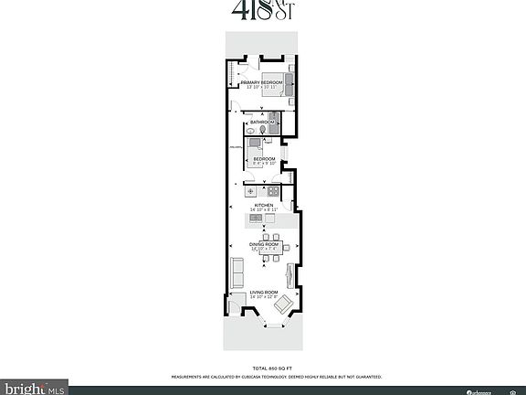 - Total interior livable area: 850 sqft