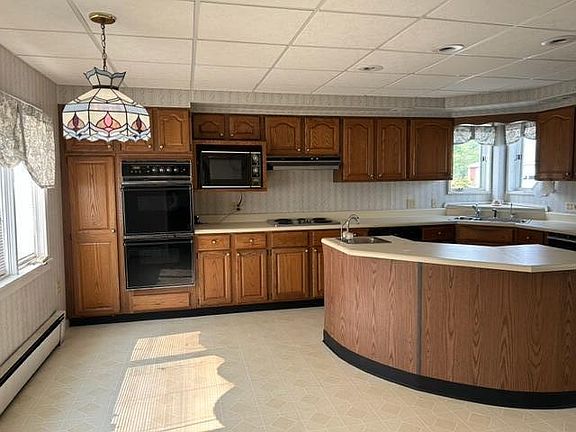 A treasure to be had. Bring yourself home to this rambling 1800's family farmhouse. From its impressive double-sided stone fireplace between the two living rooms, large eat-in kitchen and six bedrooms, this home is sure to please. There is a dedicated laundry room on the first floor as well as two more rooms that would easily accommodate additional bedrooms or den/office space. The four bedrooms on the second floor are full-sized and include a primary bedroom with a full en suite. A bonus area compliments the upstairs for additional living space as a TV, Study or Reading room. As it was in many homes of this era there is a front stairway and a back stairway. The clean and spacious heated five bay garage is accessible through the home. A perfect opportunity for a home based auto or machine shop. Over the years this home has been tended to and maintained with pure devotion. The green of the expansive lawn speaks volumes to that care. This being a former working farm, there are still solid accommodations for livestock and all their needed supplies in the old - but sturdy - red barn. This barn also has two additional garage door openings. The backyard offers spacious grounds, a trail to the woods, a small pond and a gazebo for outdoor relaxation and unwinding. The home and buildings are as solid & sturdy: you may want to bring your own interior paint palette and designs. Note: Most of the furnishings in the home will remain with the sale including the full size pool table and accessories. Family is selling the house as is.