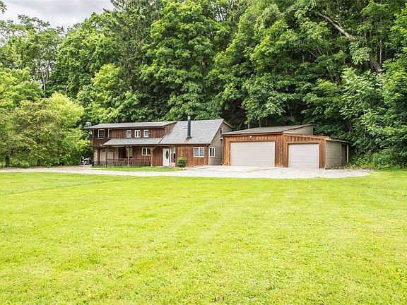 Absolutely stunning & Unique home nestled off the highway surrounded by mature landscape and a lovely flat yard. As you enter through the front door you are greeted by the gorgeous cedar siding. Step into the living room where entertaining is a breeze with the new gorgeous hardwood floors and a cozy wood burner. Open concept kitchen and formal dining room is perfect for get-togethers. Up the spiral stairs you'll find the Master Suite with separate Den/Office & a 15x18 Family room overlooking the living room. This home offers a 3 car-detached garage & a 1-Car Integral garage, perfect for a handy-man or mechanic! All backed by a 1-year AHS Warranty.